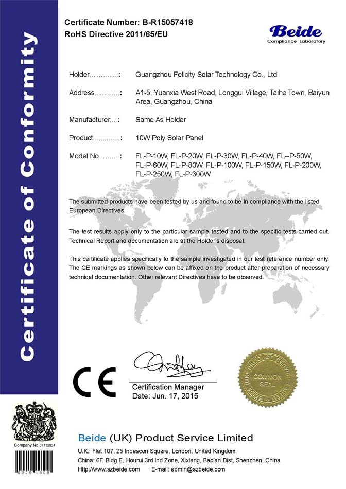 සූර්ය පොලි පැනල් සඳහා 7418 ROHS සහතිකය 2020-04-22