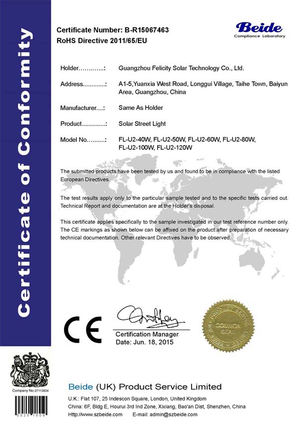 සූර්ය වීදි ලාම්පු සඳහා 7463 ROHS සහතිකය 2020-04-22